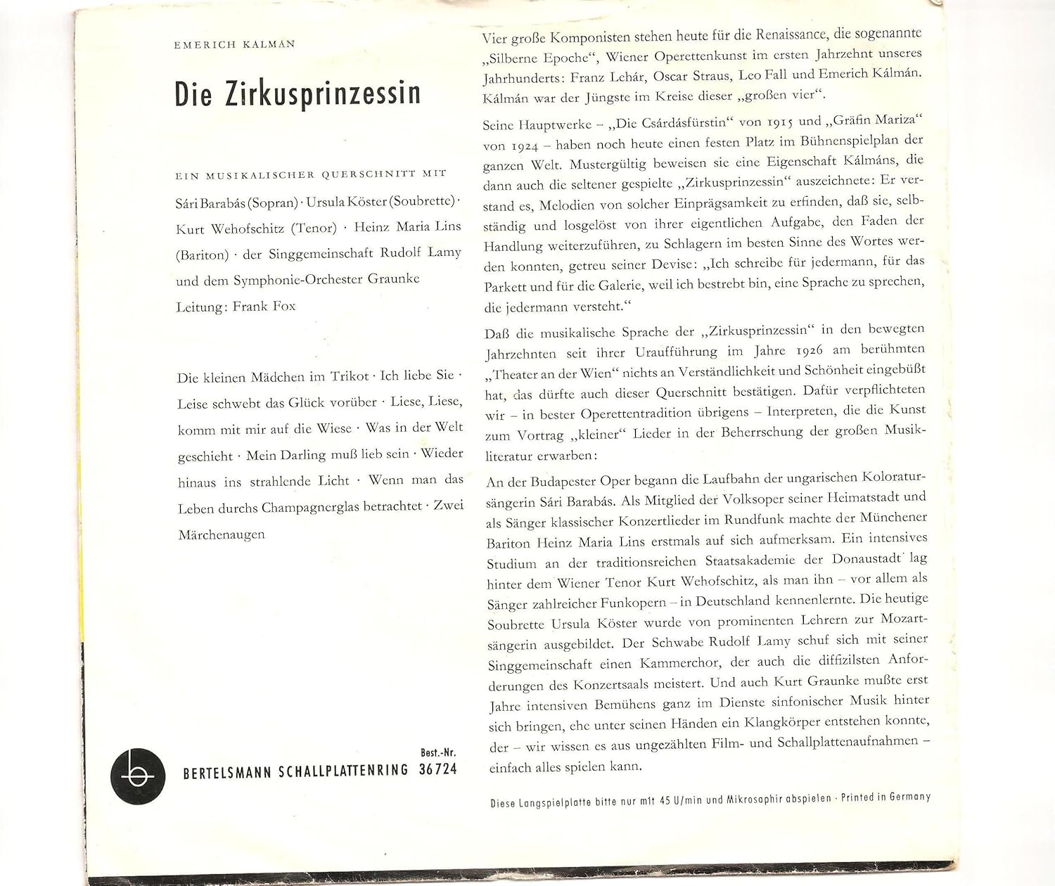 Die Zirkusprinzessin Ein Musikalischer Querschnitt Emmerich