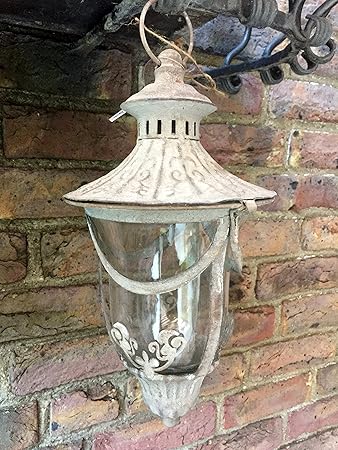 E X Laterne Hange Windlicht Spitzendekor Metall Garten Deko Antik