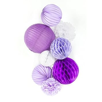 8er Set Deko Lila Weiss Hochzeit Violett Geburtstagsdeko Kit Zum