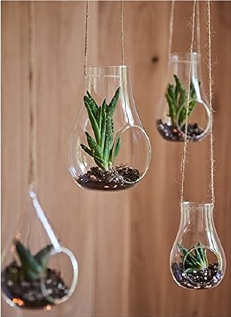 Amazon De Vase Aus Glas Mit Loch Zum Aufhangen Fur Pflanzen Deko